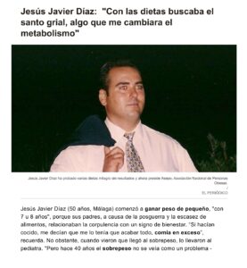 Jesús Javier Díaz (50 años, Málaga) comenzó a ganar peso de pequeño, «con 7 u 8 años», porque sus padres, a causa de la posguerra y la escasez de alimentos, relacionaban la corpulencia con un signo de bienestar. “Si hacían cocido, me decían que me lo tenía que acabar todo, comía en exceso”, recuerda. No obstante, cuando vieron que llegó al sobrepeso, lo llevaron al pediatra. «Pero hace 40 años el sobrepeso no se veía como un problema -afirma-. Aún hoy hay médicos que llaman sobrepeso a la obesidad, o te dicen que te sobran unos ‘kilitos’, pese a que la obesidad es una enfermedad y hay que denominarla así y buscar un tratamiento específico”.
